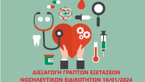 • Διεξαγωγή Γραπτών Εξετάσεων Περιόδου Ιανουαρίου 2024, Υποψηφίων Ειδικευομένων Νοσηλευτών για την Απόκτηση Τίτλου Νοσηλευτικών Ειδικοτήτων – Αιτήσεις Συμμετοχής από 21/12/2023 έως 08/01/2024