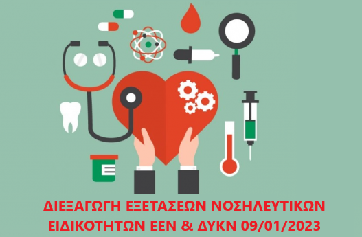 Ανακοίνωση – Διεξαγωγή Γραπτών Εξετάσεων Περιόδου Ιανουαρίου 2023, Υποψηφίων Ειδικευομένων Νοσηλευτών προς Λήψη των Νοσηλευτικών Ειδικοτήτων: α) της «Επείγουσας και Εντατικής Νοσηλευτικής» και της β) «Νοσηλευτικής Δημόσιας Υγείας/Κοινοτικής Νοσηλευτικής» – Αιτήσεις Συμμετοχής από 07/12/2022 έως 16/12/2022