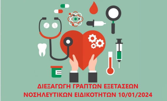 Ανακοίνωση – Οδηγίες Διεξαγωγής Γραπτών Εξετάσεων, Περιόδου Ιανουαρίου 2024, των Νοσηλευτικών Ειδικοτήτων της «Επείγουσας και Εντατικής Νοσηλευτικής», της «Νοσηλευτικής Δημόσιας Υγείας/Κοινοτικής Νοσηλευτικής», της «Νοσηλευτικής Ψυχικής Υγείας», της «Ανακουφιστικής και Υποστηρικτικής Νοσηλευτικής Φροντίδας», της «Νοσηλευτικής Καρδιαγγειακών Παθήσεων», της «Ογκολογικής Νοσηλευτικής», της «Νοσηλευτικής Παίδων» και της «Χειρουργικής Νοσηλευτικής»